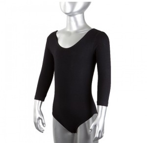 Купальник гимнастический 3/4 рукав, х/б, чёрый, р.28, ,