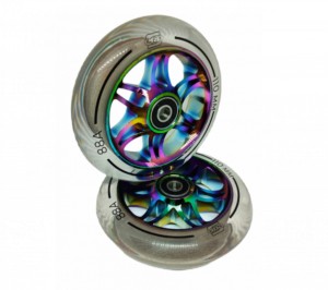 Каталог » Ролики, Самокаты, Скейтборды » Запчасти | вернуться к списку товаров Колесо для трюкового самоката ABEC-9, 110 мм., неохром-прозрачныи? гелик, HW-SPGTR