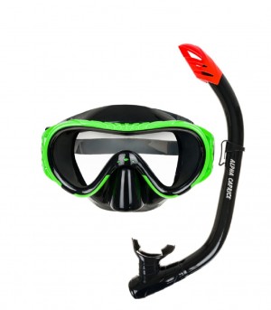 Каталог » Лето » Маски | вернуться к списку товаров Маска подростковая + трубка AC закалённое стекло, чёрный-зелёный, M161+SN97