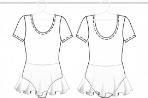 Купальник для хореографии и балета с короткими рукавами и полупрозрачной юбочкой-солнце из сетки. 90%хлопок + 10% эластан.