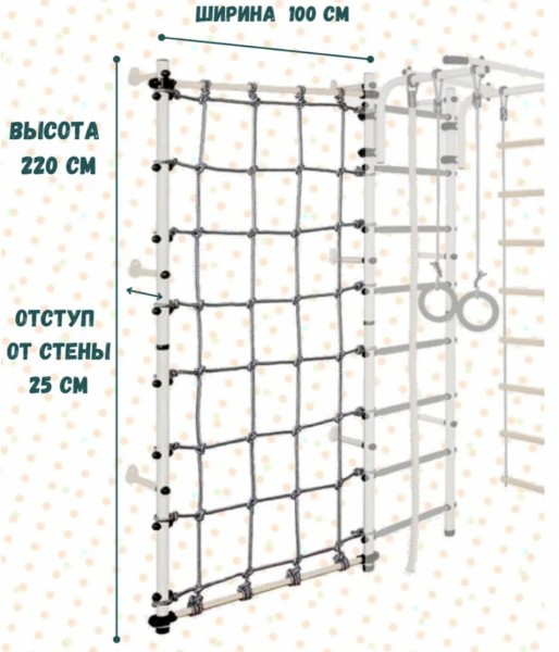 Это пристенный вариант стойки с канатным лазом, которая является дополнительным оборудованием к стенкам серии Юный Атлет. Стойка с канатным лазом будет хорошим дополнением к шведской стенке Юный Атлет Пристенный и понравится Вашему ребенку! Крепится сбоку к домашнему спорткомплексу и к стене.