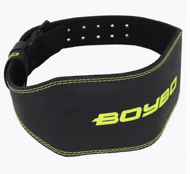 Пояс тяжелоатлетический BoyBo PREMIUM, кожа, XL (15 х 106 см), чёрный-зелёный,