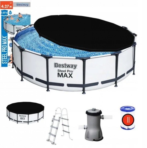 Бассейн Bestway каркасный с фильтром, 427*107 ,13030л,+лестница+крышка, 56950