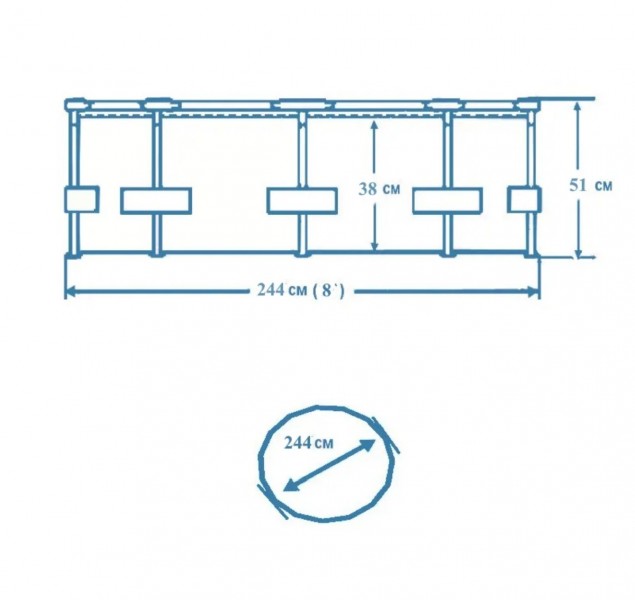 Каталог » Бассейны » Бассейны семейные с металлическим каркасом | вернуться к списку товаров Бассейн каркасный 244х51см (1828 л), 28205