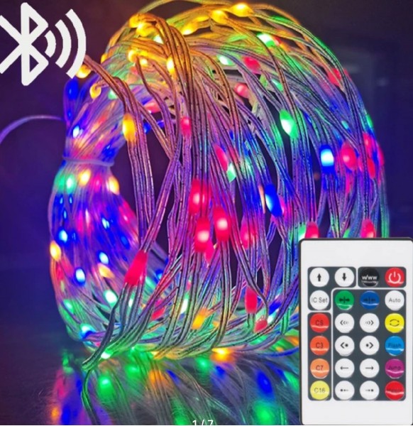 Каталог » Новый Год » Гирлянды и Подсветка | вернуться к списку товаров Гирлянда 100 LED, 10 м USB Bluetooth пульт., настраиваемый цвет, FZ-042206