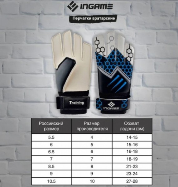 Перчатки вратарские, р.8, синий, CS-21030