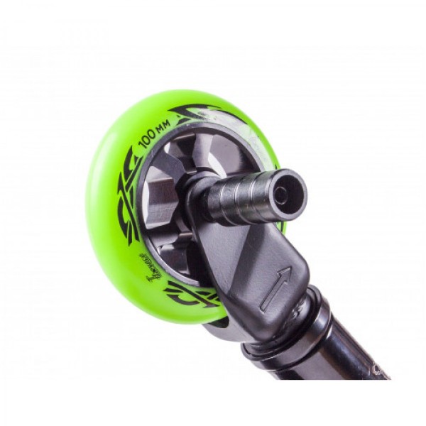 Самокат трюковый HAEVNER VIKING HIC до 100 кг, AL 6061-T6, AL PU 100 мм., , чёрный-салатов, HVK-BK/G