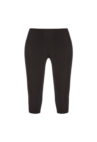 Бриджи классические женские прилегающего силуэта выполнены из эластичного трикотажного полотна. Отсутствие боковых швов, эластичная резинка по линии талии обеспечивают дополнительный комфорт. Длина изделия удобная, до середины голени.