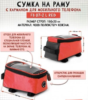 Каталог » Вело » Сумки | вернуться к списку товаров Велосумка на раму увеличенная 19,5*10*10см, красная, FB-07-2L
