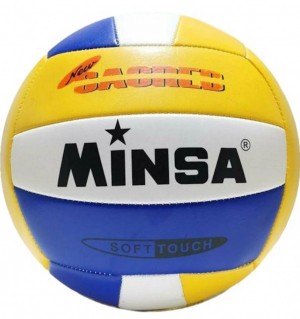 Мяч волейб. Minsa, PU, машин. сшивка, р.5, синий-белый-жёлтый, МБ-4812