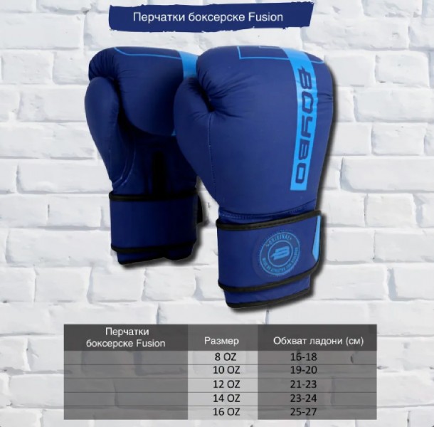 Перчатки бокс BoyBo FUSION, Кожа, 10 oz, синий, BG-092