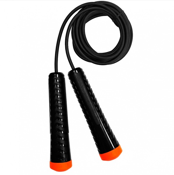 Скакалка резиновый трос, 3 м. пласт. ручки, чёрный-оранжевый, F210401-3