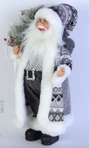 Каталог » Новый Год » Игрушки Новогодние персонажи | вернуться к списку товаров ДЕД МОРОЗ В ОЧКАХ с посохом, 60 см, серый-белый, S1350-24
